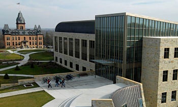 I'll admit my enthusiasm is mixed with jealousy. Why didn't I get to take Environmental Policy and Regulation or Saving Wild Places in a building topped with a green roof and mostly enclosed by floor-to-ceiling windows? Why couldn't I have sat on furniture handcrafted from lumber harvested on the construction site while I studied Environmental Ethics? At least I can still take pride in the facts that the 200,000 square-foot building saves enough energy annually to power 250 homes, and is the first science facility in the world designed to incorporate green chemistry into the classroom—minimizing lab waste with water-based reactions. Plus, it's nice to know a good chunk of the old building is still around—its limestone recycled into the new walls of the largest academic building to get the platinum award.