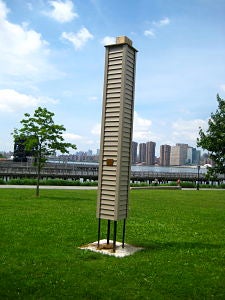I was riding my bike along the Queens waterfront recently, when, in a park by a new condo development, I found this newly built swift tower. If you read the plaque, you’ll see this tower honors the memory of Geoffrey Cobb Ryan, who died in 2007. Ryan, a true conservation hero, was (among other things) a cofounder and past president New York City Audubon, as well as a onetime member of the boards of New York City Audubon, Audubon New York, and National Audubon.