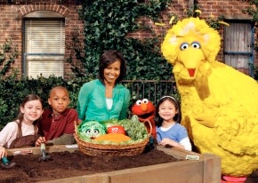 Who better to launch the two-year “My World is Green and Growing” than Michelle Obama, the fourth First Lady to appear on Sesame Street (the others were Barbara Bush, Hillary Clinton, and Laura Bush) but the only of the quartet to bring an organic vegetable garden to the White House.