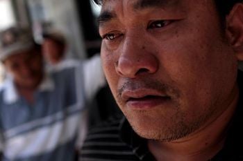 Shrimpboat captain Minh Vo cries after waiting for over four hours for financial support from Catholic Charities in New Orleans East, LA. May 21, 2010. He received a $100 grocery check for his family of six. His wife was forced to find a job after his commercial shrimp boat was grounded because of the oil spill.