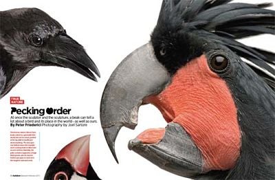 lot about a bird and its place in the world—as well as ours. In "Pecking Order" (Audubon Magazine, January-February 2011), writer Peter Friederici and photographer Joel Sartore probe the science behind bird beaks.