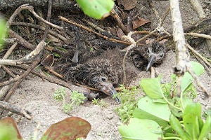 ![]() These chicks, buried in sand and vegetation by the tsunami, survived thanks to rescue efforts. Image: FWS Refuge biologist, Pete Leary |