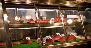 (Tuna for sale at Tsukiji fish market. By tacoekkel via Flickr)