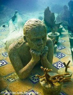 Cancun’s got a new museum. But to view its installations, you’ll have to snorkel, dive, or ride a glass-bottomed boat. That’s because the museum is on the ocean bottom near Mexico’s National Marine Park of Cancun, Isla Mujeres and Punta Nizuc. Apparently, underwater is the new place to be. (Remember the below-the-surface meeting the Maldives government held last October to make a statement about climate change?)