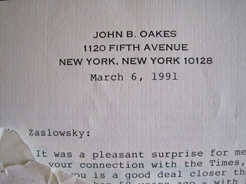 I was 'Dyan Zaslowsky' when NYT editor Oakes wrote to me about Rosalie Edge's influence on him as a young man.