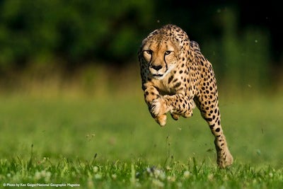 Sarah, an 11-year-old cheetah at the Cincinnati Zoo, broke her own world record by running 100m in 5.95 seconds on June 20, 2012. Photo: © Ken Geiger/National Geographic Magazine