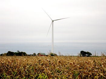 from nearby farms to cross-cutting Highway 49 (known as "Hood ornament 49" for the abundance of road kill it claims) and the 86 new wind turbines that now pop up from neighboring corn fields. (The number of 1.5-megawatt turbines is expected to reach up to 133—contingent on the outcome of a study investigating their effects on birds and bats.)