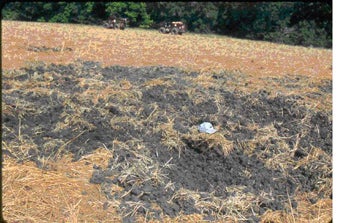 Wild hog damage in a Missouri hay field. “Once they get to rooting around, anything in their path is going to get destroyed,” said Jim Braithwait, of the Missouri Department of Conservation (MDC). (Courtesy of MDC)