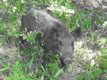 A wild hog in Missouri. Between 1988 and 2005 wild hog numbers in the U.S. quadrupled, from one million to four million. (Courtesy of Missouri Department of Conservation)