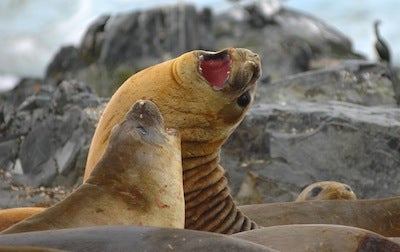 The southern elephant seal is the largest seal in the world. Males grow to 14.5 feet long and females will reach 11 feet. Photo: Glenn E. Grant/NSF