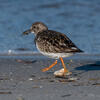 Best known for habit of inserting bill under stones, shells, etc., and flipping them over to find food underneath. Several birds may work together to overturn a larger object. Often probes under seaweed or debris. Can be a nuisance in tern colonies at times, including on wintering grounds on Pacific islands, where it may puncture and eat the contents of many eggs.