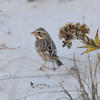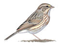 | Habitat | Open fields, meadows, salt marshes, prairies, dunes, shores. Over most of range, found in open meadows, pastures, edges of marshes, alfalfa fields, pastures; also tundra in summer, shores and weedy vacant lots in winter. Northeastern "Ipswich" Savannah Sparrow lives on grassy coastal dunes; southwestern "Belding's" and "Large-billed" races inhabit salt marshes. |