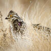 Mostly seeds, buds, leaves. Mostly vegetarian for most of year. In winter, when food on ground is mostly buried by snow, feeds heavily on buds of trees and shrubs. In spring, eats leaves, green shoots, large numbers of flowers. Varied diet in fall, with seeds, berries, leaves, waste grains. Insects eaten mainly in summer (especially by young birds), including many grasshoppers.