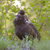 In breeding season, male gives deep song punctuated with short flights, wings fluttering loudly. Typically sings from high in trees. In peak display, male struts with tail raised and fanned, neck feathers spread to reveal patches of bright skin. Female mates with male, then departs. Nest site is on ground, under cover such as shrub, log, rock ledge. Nest a shallow scrape, lined with dead twigs, needles, leaves, a few feathers.