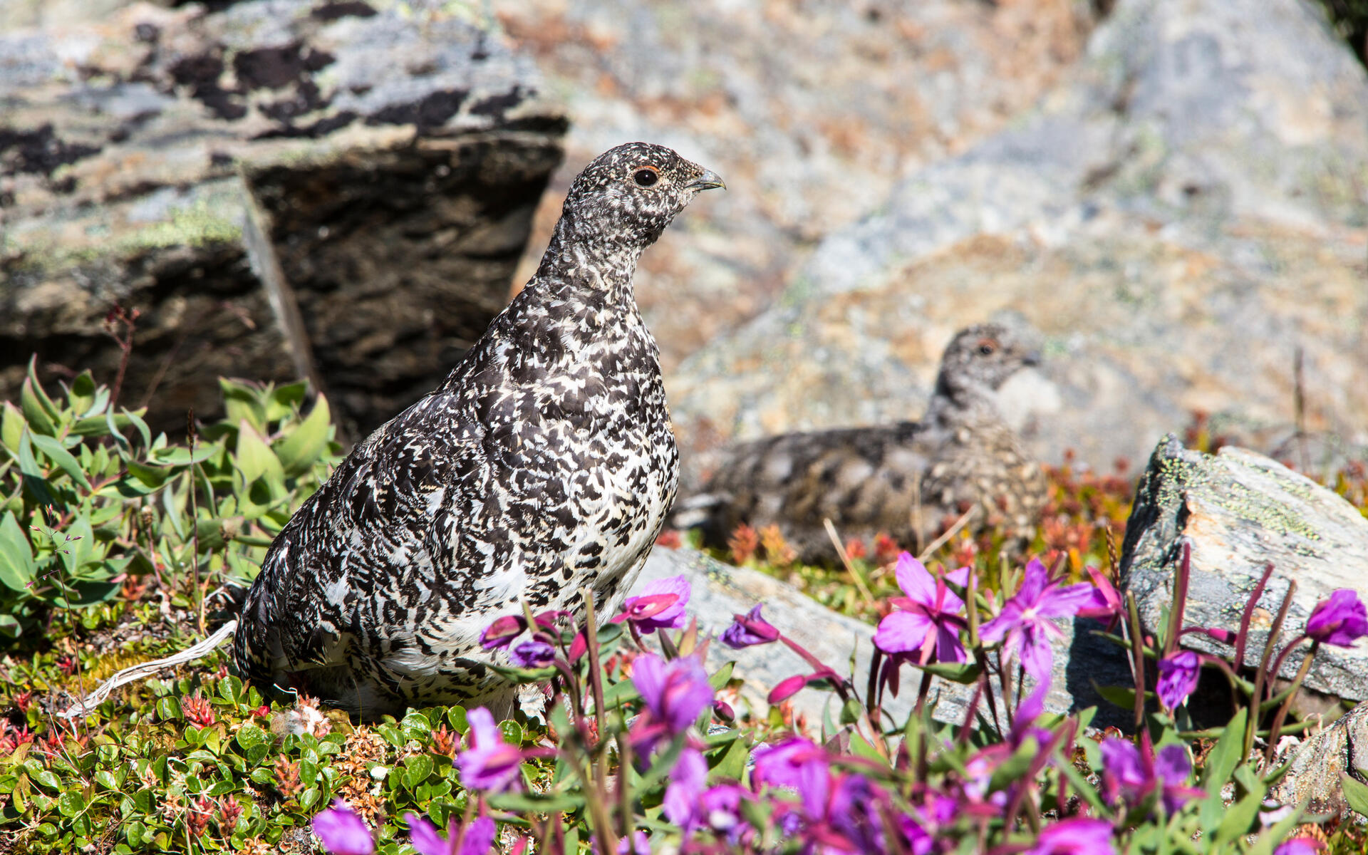 Feathery feet help ptarmigans travel on top of the snow during winter.