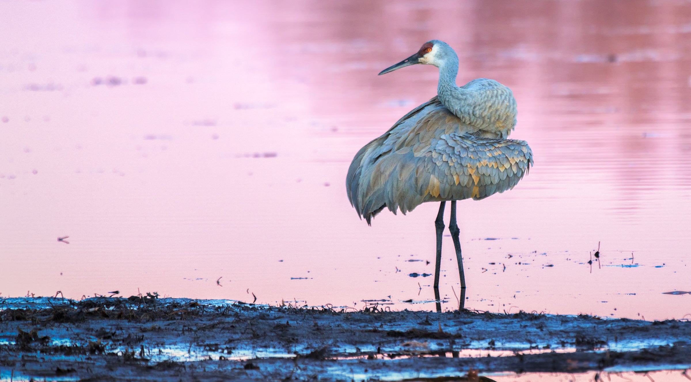 Cranes are among the oldest living birds on the planet. A Crowned Crane fossil, a close relative of the Sandhill Crane, was found in the Ashfall Fossil Beds in northeast Nebraska, estimated to be about 10 million years old. According to the Cornell Lab of Ornithology, the earliest unequivocal Sandhill Crane fossil, estimated to be 2.5 million years old, was unearthed in the Macasphalt Shell Pit in Florida. Migration between wintering grounds in the south and breeding grounds in the north has likely taken Sandhill Cranes across what is now Nebraska for many thousands, if not millions, of years. Thus, the link between Sandhill Cranes and the Platte River is believed to date to the river’s origins some 10,000 to 12,000 years ago, following the end of the last ice age.