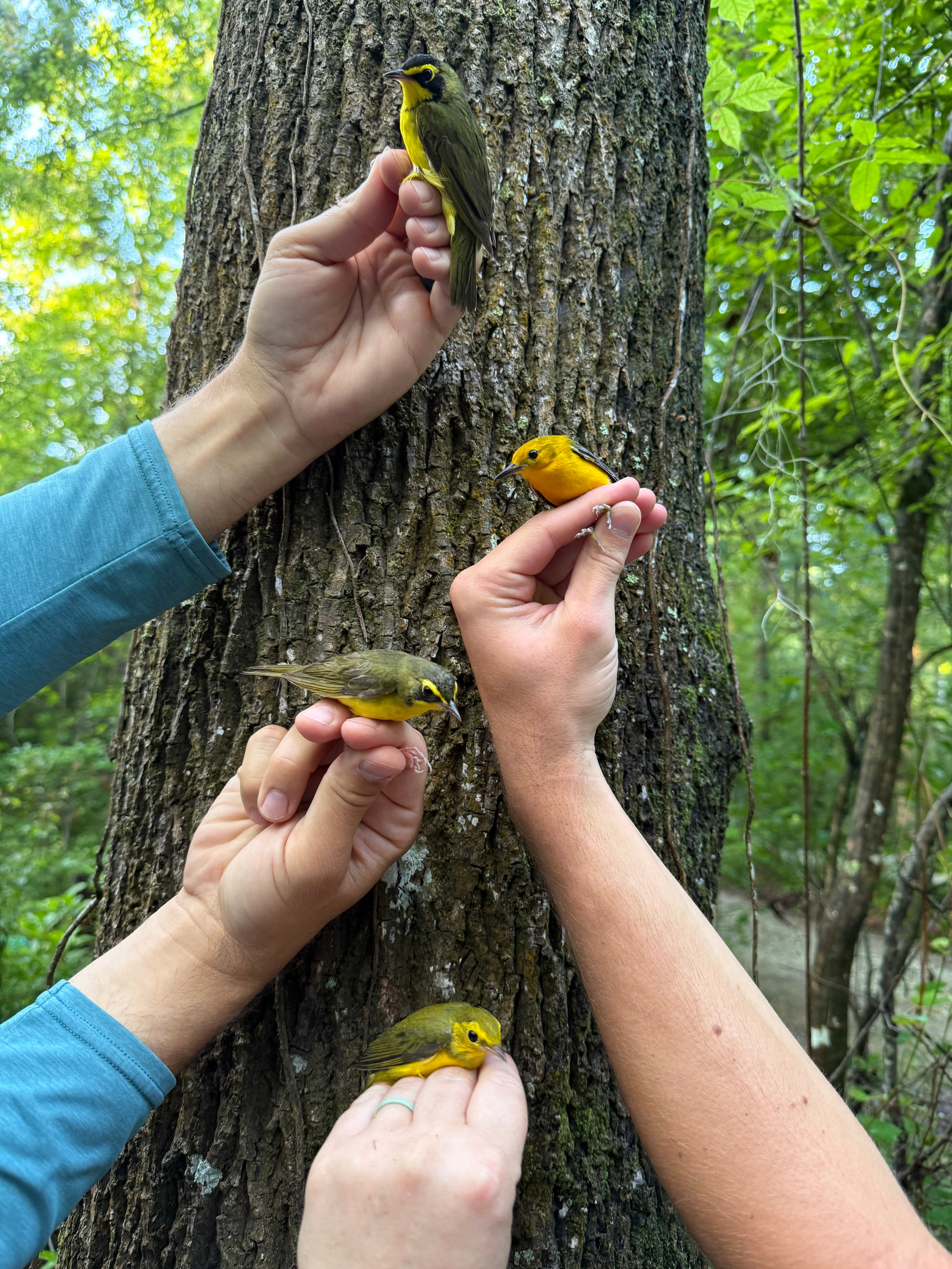 MAPS stands for Monitoring Avian Productivity and Survivorship. This continent wide collaboration of banding stations keeps a finger on the pulse of breeding bird populations. Following standardized protocols across each station, the data collected can be used to estimate survival, recruitment, productivity, range shifts, disease, and more! We host a MAPS station at Beidler Forest that anyone can visit when it is operating, allowing us to share the process and science up close.