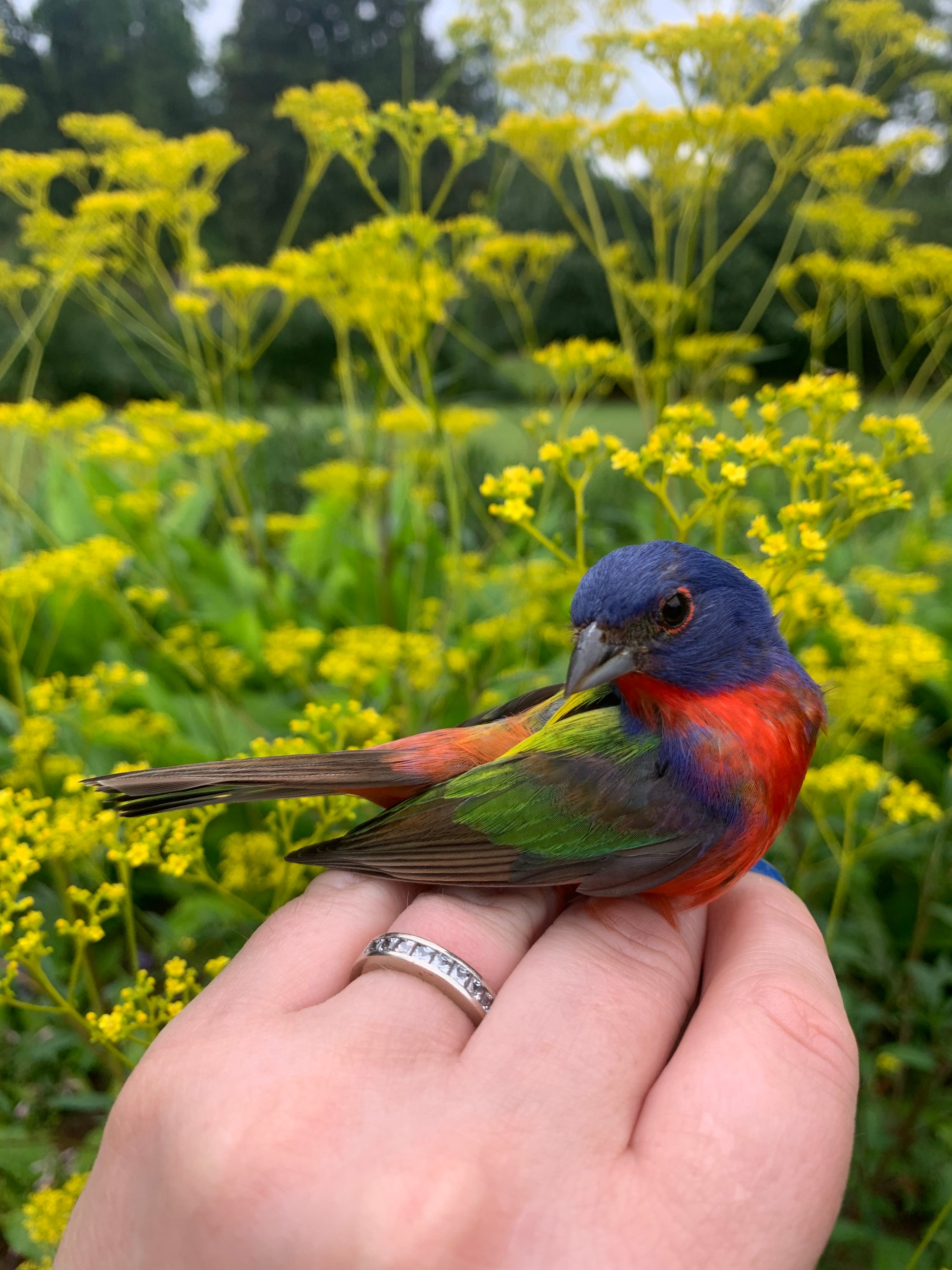 Painted Buntings, with the nickname nonpareil, which is a French term that roughly means without equal, is a great descriptor of this flying rainbow that skulks around the hummock islands and forest edges of South Carolina. This bird captures the love and admiration of birders and non birders alike. Facing population declines from habitat loss, the coastal squeeze (which is development from the land side and sea level rise from the other), and illegal pet trades, this bird is in the hearts and minds of conservationists. At Audubon we've worked with homeowners who host buntings at their feeders to tag and track this species to determine their migratory movements, wintering and stop over locations. In the process we recaptured the oldest known Painted Bunting ever to be documented. Read about Old Man Bunting here.