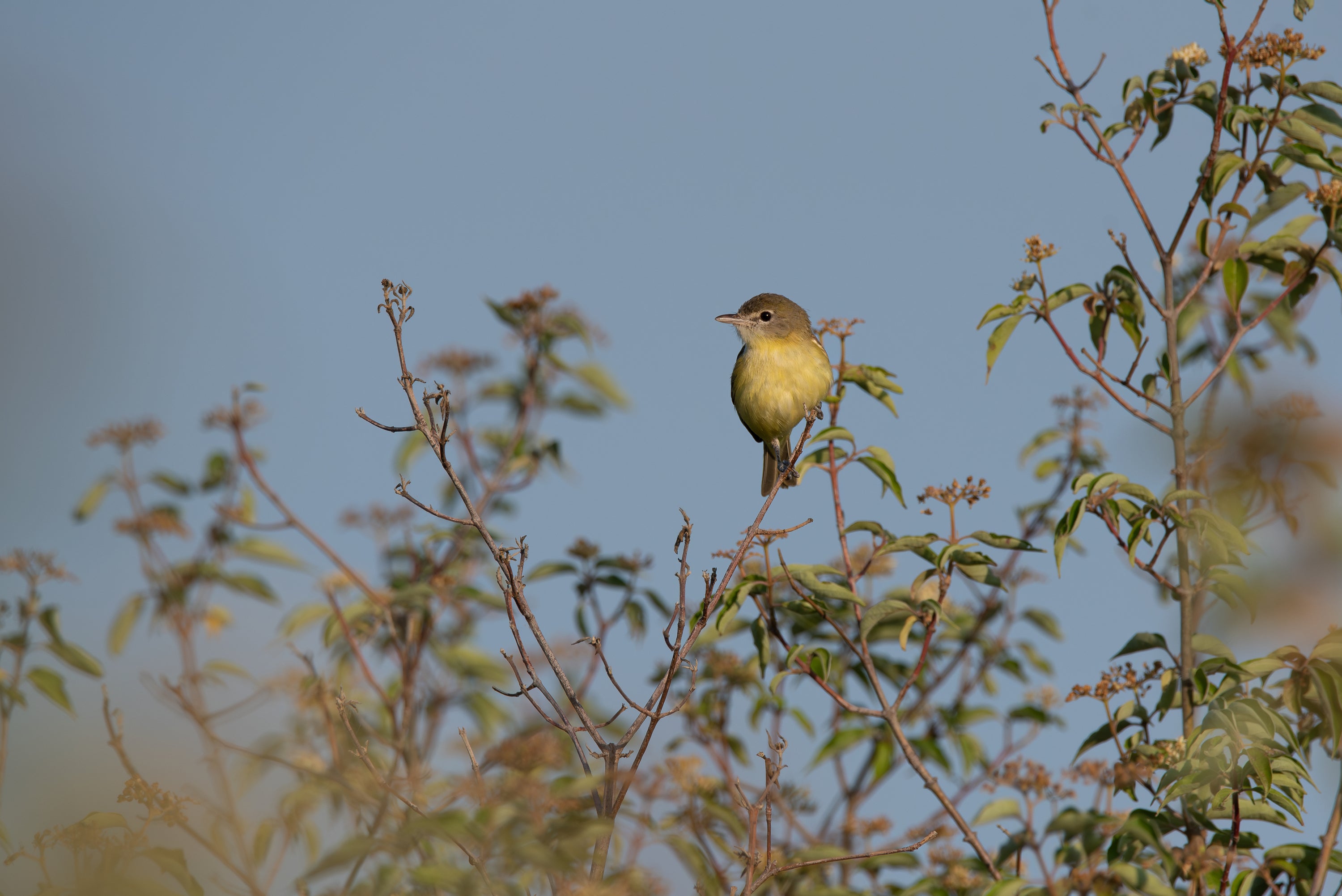 In the Southwest, Bell’s Vireos are closely tied to rivers like the Rio Grande, Gila, and Verde. Along these rivers, mesquites, willows, and hackberries grow quickly, creating the scrubby edge habitat that insects love. Fresh plant growth is full of water and highly palatable to a wide range of insects looking to kick off the spring and summer. Bell’s Vireos capitalize on this seasonal pulse. Their arrival in April coincides with peak insect availability and rapid vegetation growth, providing the resources they need to establish territories and raise young. They build delicate, hanging cup nests suspended between forked branches, often just a few feet above the ground.