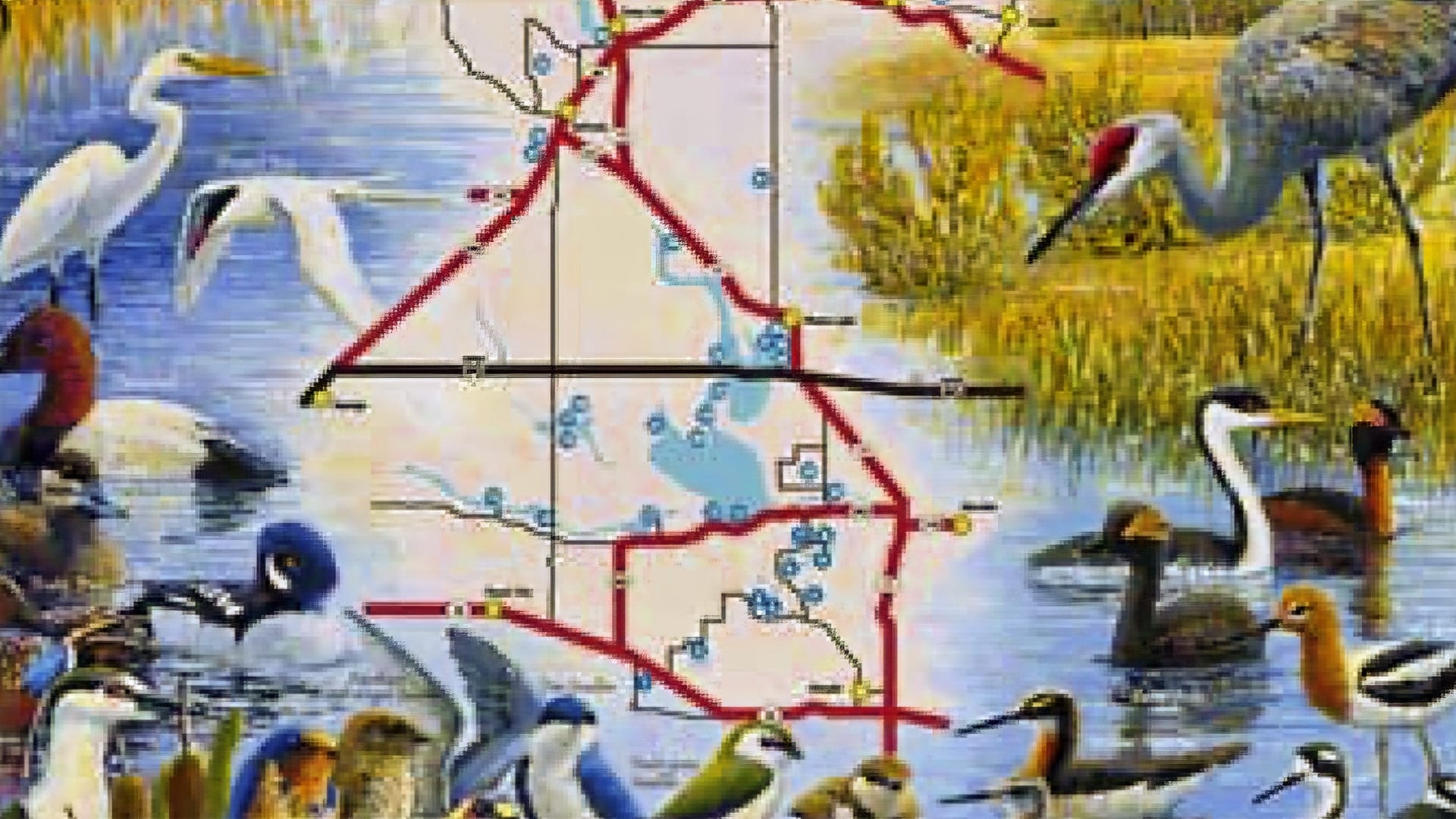 The map features original art by Ed Newbold on the cover and along the route of the map. Thank you to the many dedicated Birding Trail volunteers, and to the funders: Washington’s Dept. of Transportation, Dept. of Fish and Wildlife; U.S. Fish and Wildlife Service, U.S. Bureau of Reclamation, and many individuals.